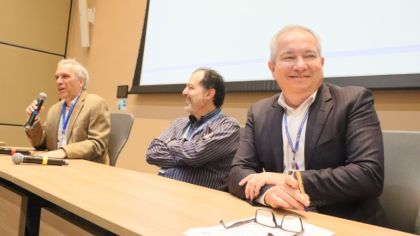 A mesa solene foi composta pelo Superintendente do HCFMUSP, Engº Antonio José Rodrigues Pereira; o Coordenador do Núcleo de Gestão de Pessoas (NGP), José Luís de Lira e o Diretor do Centro de Atenção ao Colaborador (CeAC), Dr. Luciano Patah.