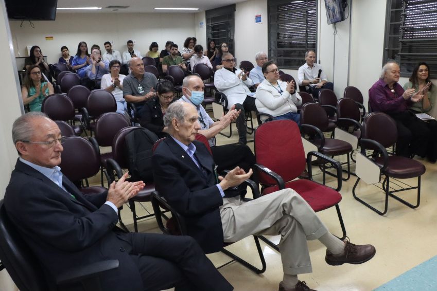 O encerramento anual dos trabalhos da Clínica Cirúrgica III contou com momento de descontração com a apresentação do maestro, músico e compositor Tato Fischer. Ele é conhecido por seus trabalhos com a banda Secos e Molhados nos anos 70 e também como diretor musical de peças teatrais.