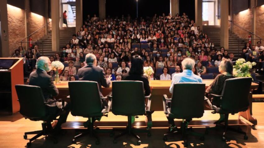 A solenidade aconteceu no dia 24 de abril (24/4), no Teatro da FMUSP e contou com a presença da Diretora da FMUSP e Presidente do Conselho Deliberativo do HCFMUSP, Profª. Drª. Eloísa Silva Dutra de Oliveira Bonfá; do Diretor Clínico do HCFMUSP, Prof. Edivaldo Massazo Utiyama; do Vice-Diretor Clínico do HCFMUSP, Prof. José Antonio Sanches Junior; do Superintendente do HCFMUSP, Eng. Antonio José Rodrigues Pereira e da Diretora da Divisão de Fisioterapia do Instituto Central do HCFMUSP (ICHC) e Coordenadora da COREMU HC, Profª. Clarice Tanaka.