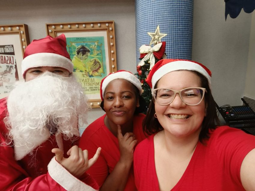 No Instituto Central (ICHC), grupos de Mamães Noel e Papai Noel animaram o ambiente de sala em sala e na Creche, onde ocorreu distribuição de brinquedos.