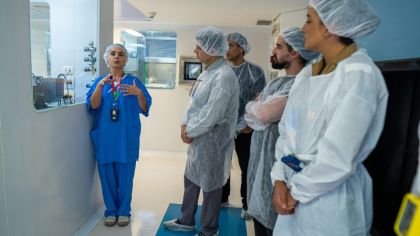 Durante a imersão, os profissionais conheceram o Laboratório de Engenharia Clínica (LABEC) do Hospital das Clínicas e foram apresentados aos protocolos de identificação de problemas e gestão de manutenção da instituição. Além disso, visitaram o Centro Cirúrgico do Instituto Central (ICHC) e as salas de Cíclotron e Ressonância 7T do Instituto de Radiologia (InRad).