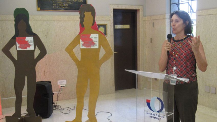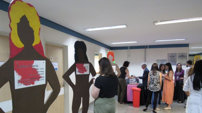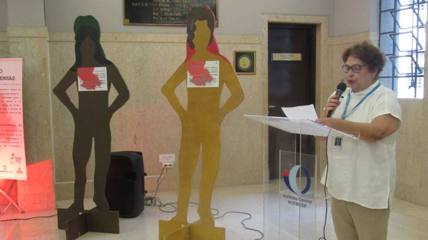 Dentro da programação do Mês da Mulher, o Instituto Central do HCFMUSP recebeu a exposição “Corpos das Penhas”, que reúne 16 corpos de madeiras com placas que denunciam crimes de feminicídio em São Paulo.