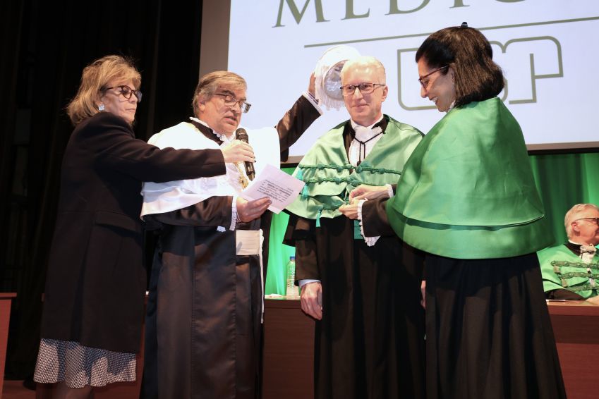 Após a investidura dos cargos, o Magnífico Reitor, Prof. Dr. Carlos Gilberto Carlotti, que também é médico e professor da FMUSP, saudou os colegas titulares e celebrou a entrada dos nossos professores na instituição como um dos momentos mais importantes, por representar novos caminhos, renovação e, também, as novas diretrizes que esses docentes vão dar para o ensino de medicina.