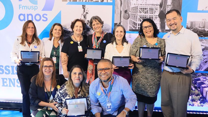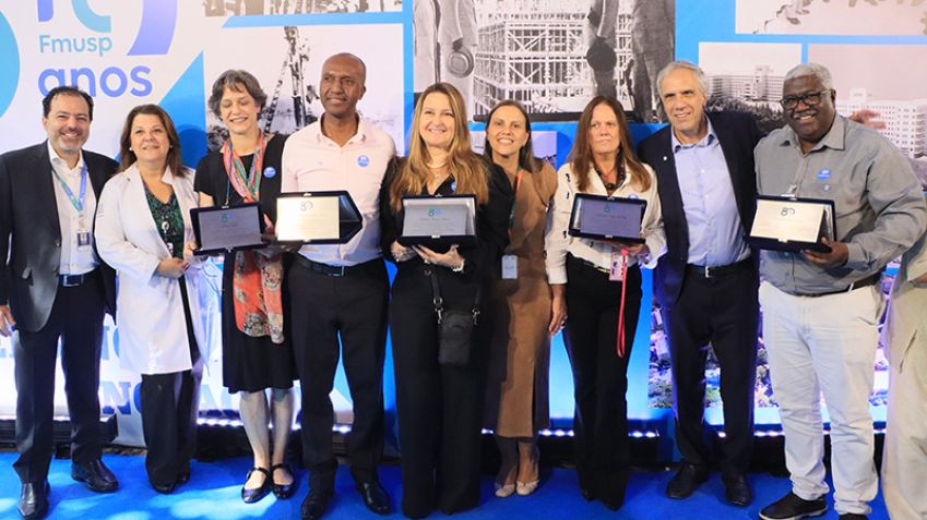 Colaboradores administrativos, multiprofissionais e assistenciais receberam homenagem especial por parte da Instituição em razão de sua dedicação e trabalho que contribuíram para a transformação do HCFMUSP em centro de excelência e referência na Medicina.