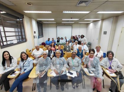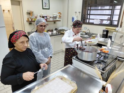 Acompanhada de voluntárias, a Nutricionista preparou o “polêmico” cuscuz paulista, bolo de milho e uma versão não alcoólica do vinho quente. Todos os pratos foram degustados, com direito à repetição e muitos elogios. Na turma, estiveram presentes colaboradores da Nutrição, Enfermagem, Neurologia e Centro de Gestão de Pessoas.