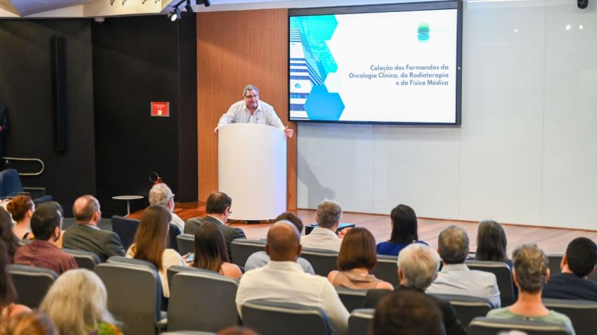 A abertura foi marcada pelo discurso do Diretor Técnico da Divisão de Oncologia do Icesp e Professor Titular da Disciplina de Oncologia Clínica do Departamento de Radiologia e Oncologia da FMUSP, Prof. Dr. Paulo Hoff. “Para nós, uma instituição acadêmica, nada é mais importante do que esse momento, em que comemoramos e oficializamos a formatura dos nossos alunos. Sei que nossos formandos vão se destacar onde quer que eles decidam começar suas práticas e que veremos grandes líderes da Oncologia brasileira saindo daqui. Hoje tenho certeza que a Oncologia brasileira é destaque não só na América do Sul, mas a nível mundial, graças ao esforço de todos aqui e que os formandos vão contribuir para que isso não só continue, mas que essa qualidade, essa excelência aumente cada vez mais”, finaliza Prof. Dr. Paulo Hoff em sua fala de abertura.