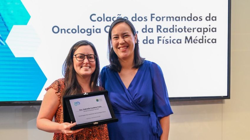 Houve ainda a fala da representante dos formandos da Radioterapia, Dra. Thais Papotti Moura de Oliveira. “Durante esses quatro anos fomos imersos não apenas em conteúdos técnicos e científicos, mas também em experiências que nos ensinaram o verdadeiro significado da medicina: o cuidado com o próximo. Aprendemos que a Radioterapia é uma combinação de precisão e de humanidade. A literatura médica nos ensina a tratar doenças, mas a residência nos ensinou a olhar além do diagnóstico e tratar pessoas, levando em consideração também o contexto familiar, social, espiritual e emocional dos pacientes, e este é um dos maiores aprendizados que levaremos conosco”.