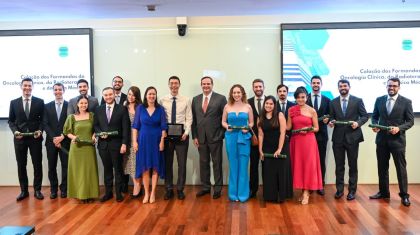 Por fim, ocorreu a entrega dos canudos aos formandos da Oncologia Clínica pelo Prof. Dr. Paulo Hoff e pela coordenadora do Programa de Residência Médica em Oncologia Clínica da FMUSP, Dra. Milena Mak.