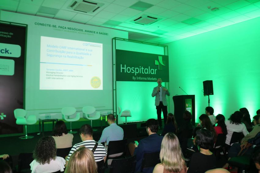 O Congresso foi aberto com a palestra “O Modelo CARF Internacional e sua Contribuição para a Qualidade e Segurança na Reabilitação”, proferida pelo Diretor Executivo de Reabilitação Médica da CARF International, Terrence Carolan. A reabilitação vai além da condição clínica do paciente - disse.