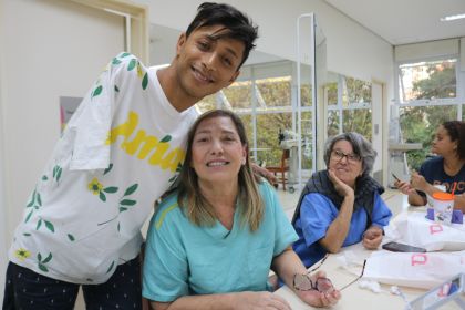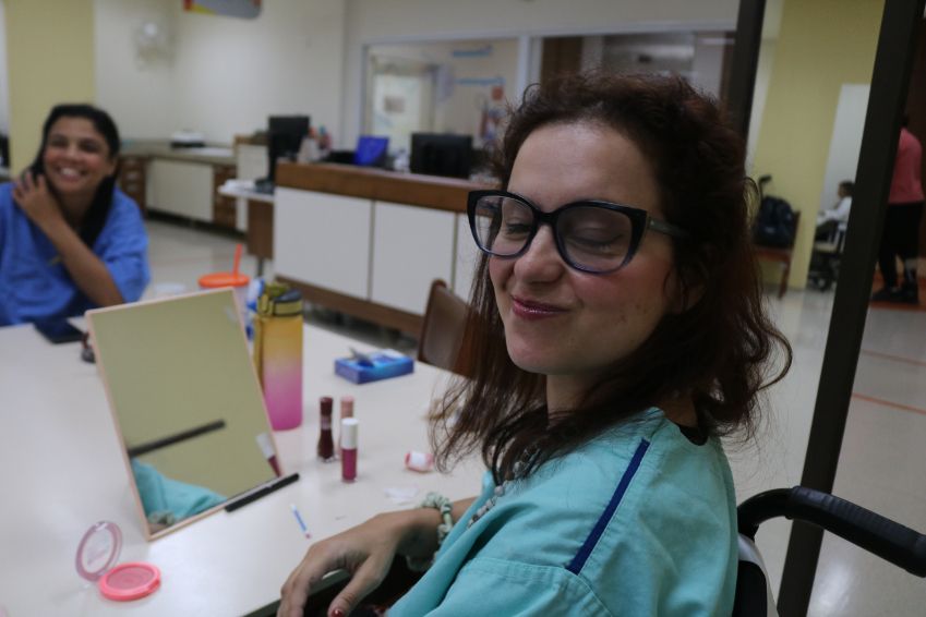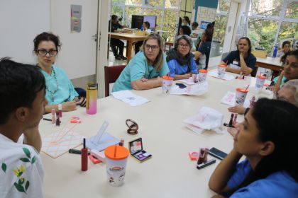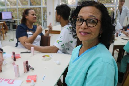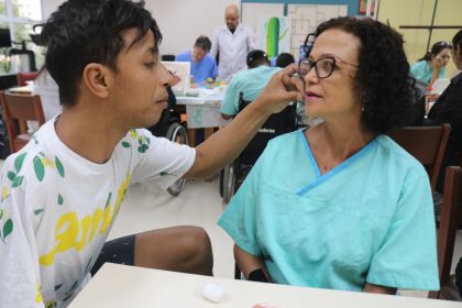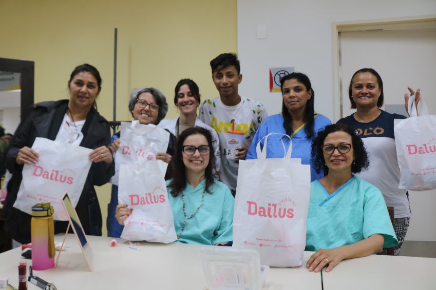Uma oficina de maquiagem foi conduzida pelo paciente e influenciador Daniel Souza e Silva, em parceria com o Serviço de Terapia Ocupacional. Ele destacou a importância do autocuidado, da valorização da autoestima e da maquiagem como ferramenta para resgatar a confiança e a alegria.