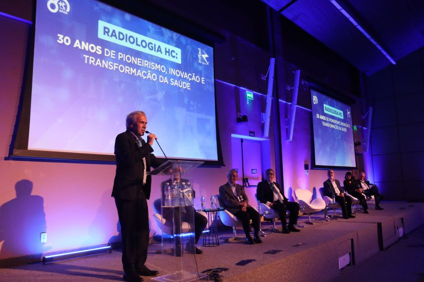 O Prof. Dr. Giovanni Guido Cerri relembrou as conquistas e contribuições do InRad e destacou sua importância para os avanços na inovação dentro do Complexo. "Em certa parte, o Instituto foi o berço da inovação no Hospital das Clínicas, desenvolvendo o maior hub de inovação em saúde do país - e essa é uma responsabilidade para o futuro. Hoje, temos o nosso laboratório de IA, o projeto de saúde digital e outras importantes iniciativas que olham para a transformação da saúde".