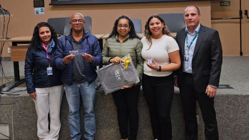 A técnica de Radiologia, Andreza Pinheiro da Silva, que atua também há 14 anos no InRad foi a segunda homenageada do dia. Em seu discurso, ela relembrou o dia em que fez uma prova admissional para trabalhar na instituição. “Cresci, aprendi e estou melhorando a cada dia. Agradeço por estar aqui com meus pacientes todos os dias e minhas crianças que me contagiam”, finaliza.