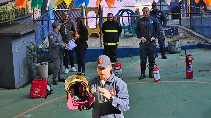 Na ocasião, integrantes do Corpo de Bombeiros deram uma palestra e ensinaram lições valiosas de segurança para os estudantes de 3 a 6 anos da Escola Municipal de Educação Infantil (EMEI) Prof. Antônio Branco Lefèvre. Foram apresentados equipamentos utilizados para combate de incêndios. Os alunos também receberam kits com cartilha e giz de cera para colorir.