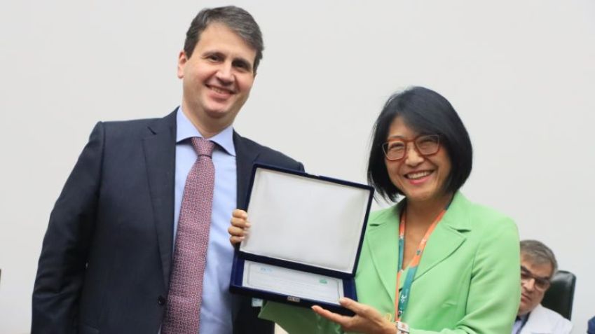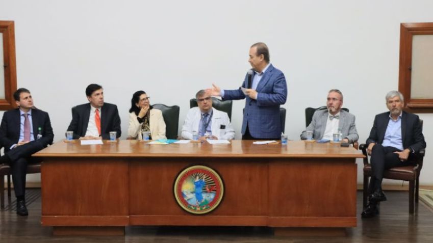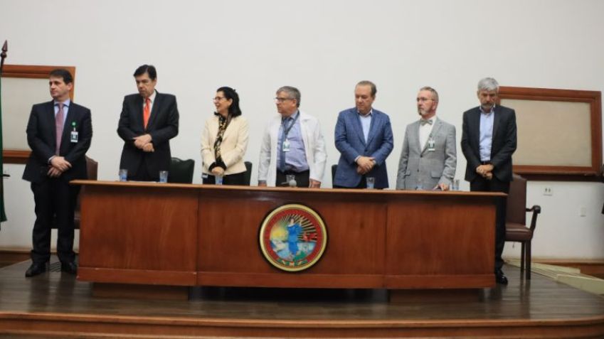 A mesa solene do evento foi composta pelo Secretário de Estado da Saúde de São Paulo, Dr. Eleuses Vieira de Paiva; o Reitor da Universidade de São Paulo (USP), Prof. Dr. Carlos Gilberto Carlotti Junior; a Diretora da FMUSP e Presidente do Conselho Deliberativo do HCFMUSP, Prof.ª Drª. Eloisa Silva Dutra de Oliveira Bonfá.