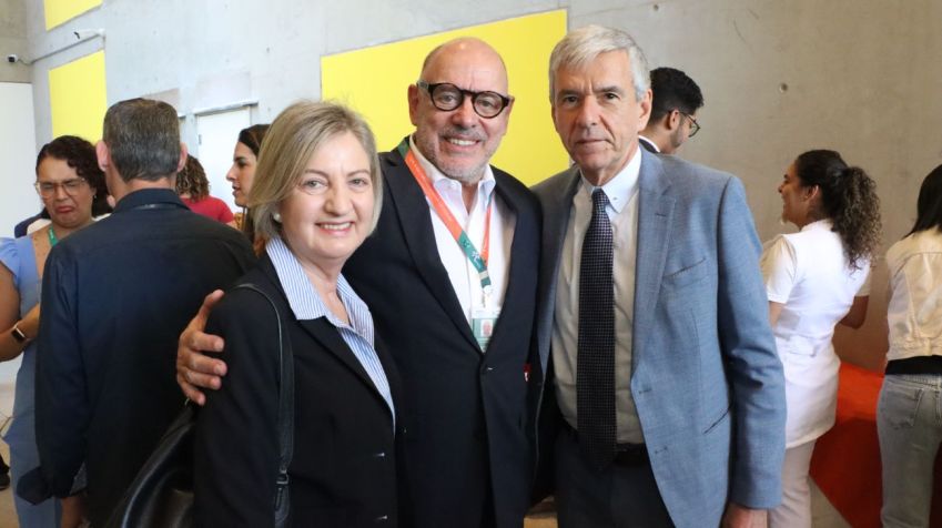 A mesa solene do evento contou com a presença da Diretora da FMUSP e Presidente do Conselho Deliberativo do HCFMUSP, Profª. Drª. Eloísa Silva Dutra de Oliveira Bonfá e do Presidente da Comissão de Planejamento e Controle do Conselho Deliberativo do HCFMUSP, Prof. Dr. Giovanni Guido Cerri.