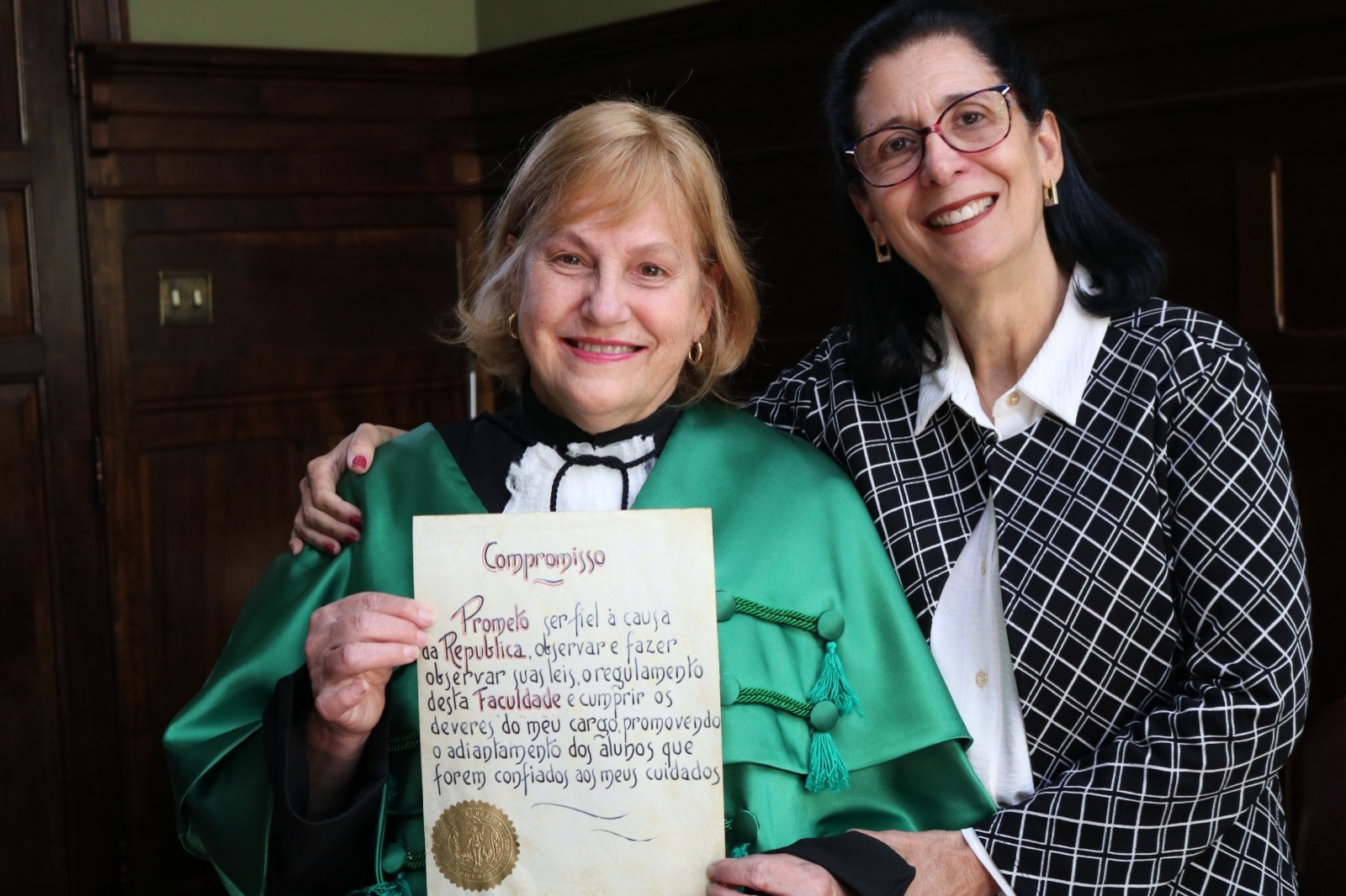 A Profa. Dra. Leila Antonangelo foi investida no cargo de Titular pela diretora da FMUSP, Profa. Dra. Eloísa Bonfá, em reunião privada realizada hoje na Diretoria da Faculdade. Doutora em Ciências Biológicas, a nova titular do Departamento de Patologia será responsável pela disciplina de Patologia Clínica.