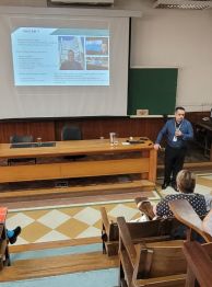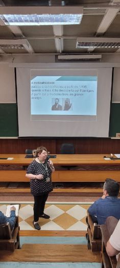 Na ocasião, a Profª. Drª. Maria Inês C. C. Guimarães ministrou a palestra "Segurança no trabalho com material radioativo no Laboratório, descarte correto desses materiais". A especialista demonstrou como a radioatividade está presente em nosso dia a dia e como lidamos com ela no ambiente profissional.