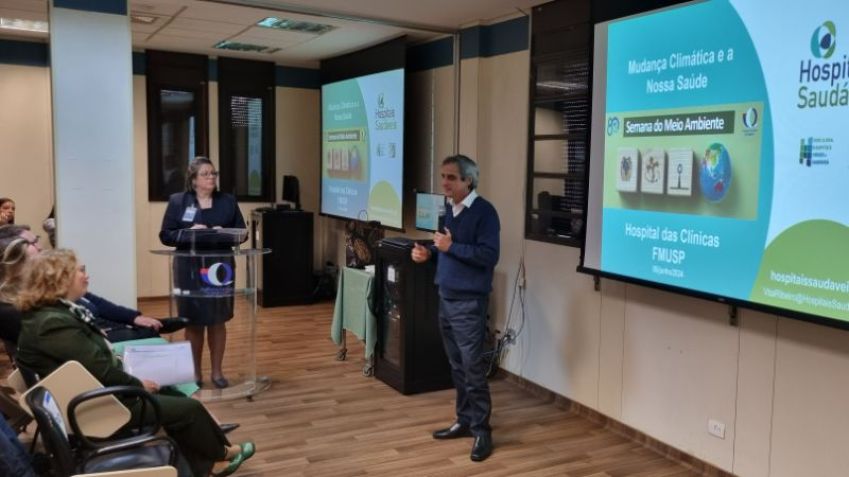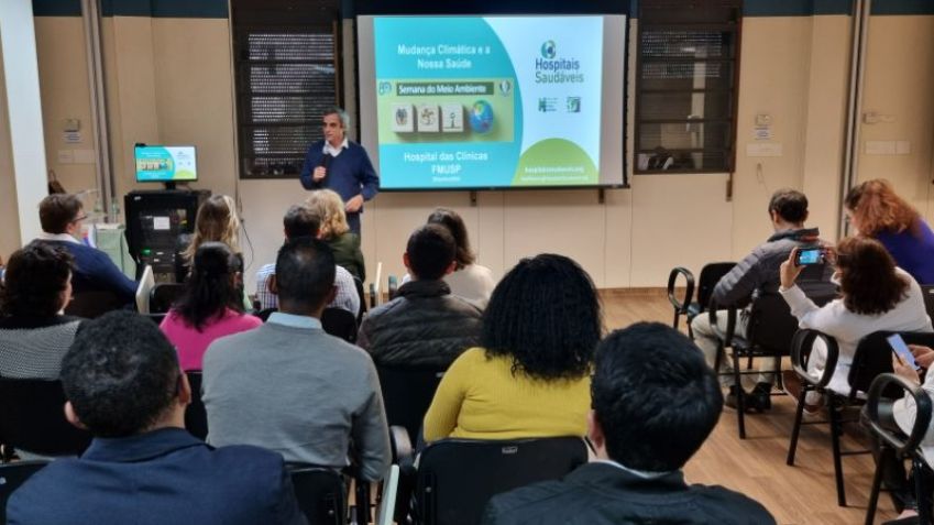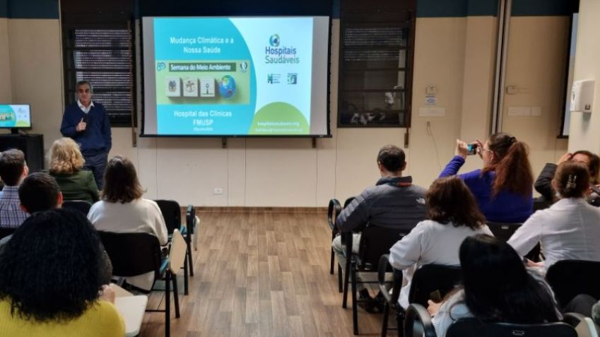 O Instituto Central do HCFMUSP promoveu a palestra “Mudanças Climáticas e o Impacto na Saúde”, ministrada por Vital Ribeiro, Presidente do conselho da ONG Projeto Hospitais Saudáveis (PHS), membro da organização Internacional Saúde sem Dano (SSD), coordenador da Rede Global Hospitais Verdes e Saudáveis (Global Green and Healthy Hospitals) e Arquiteto da Divisão de Meio Ambiente do Centro de Vigilância Sanitária - CVS SES-SP. Durante o encontro foi possível tomar contato com aspectos importantes sobre os impactos dos resíduos gerados no meio e conversar sobre possíveis alternativas para equilibrar a sustentabilidade na área da saúde.