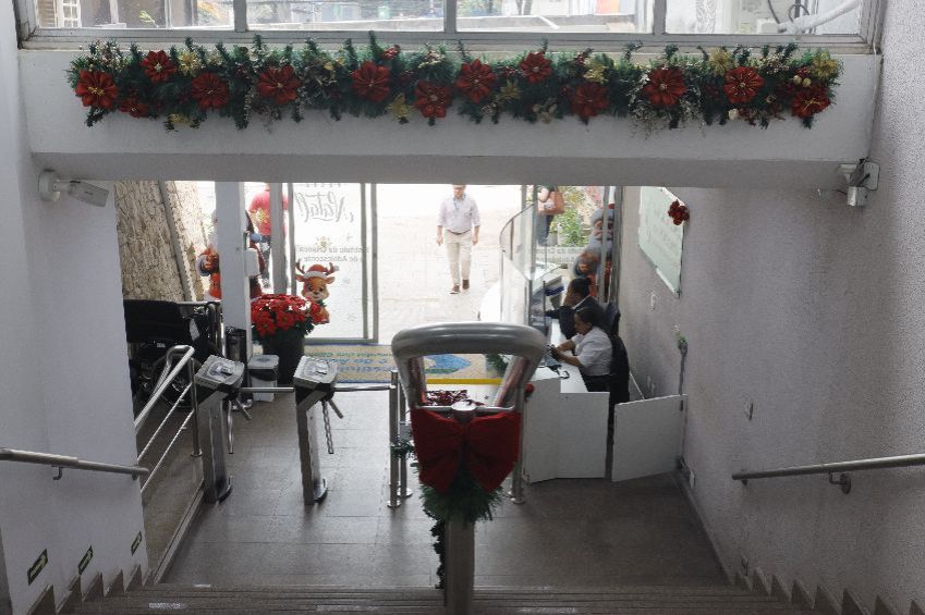 Quem chega ao prédio do ICr já encontra as portarias 7, 3 e 2 decoradas com adesivos natalinos. A programação natalina foi promovida pela Humanização do Instituto.