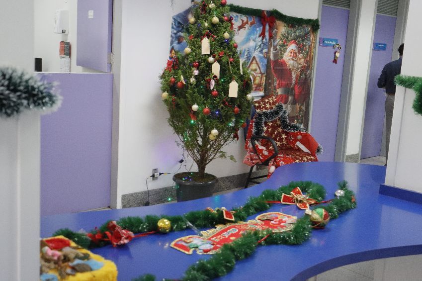 No IOT, a decoração de Natal começa no saguão do térreo com a tradicional Árvore, Papai Noel e presépio. Nas enfermarias, todas as portas do quartos receberam enfeites especiais sobre a data.