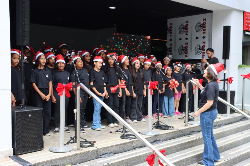 Na sexta-feira (12/12), a música do Coral Feminino destacou-se no térreo, onde está instalada a tradicional Árvore de Natal.