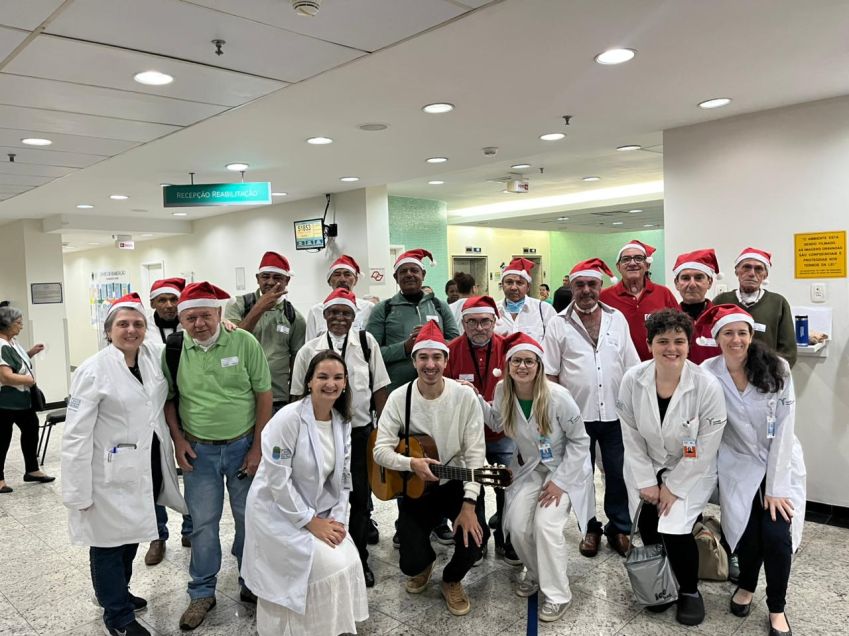 O musicoterapeuta Daniel Palacios conduziu uma roda de canções natalinas próxima ao final da atividade. Os pacientes receberam um desenho como lembrança para pintura com a família em casa. No Instituto Rede Lucy Montoro (IRLM), haverá confraternização com um almoço especial para colaboradores.