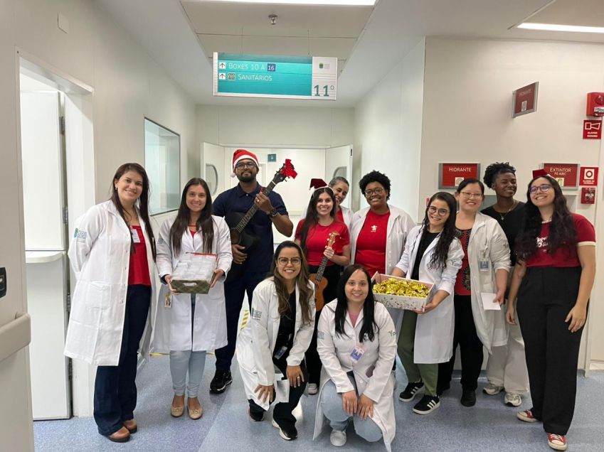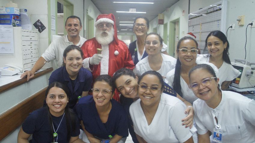Na quarta-feira (10/12), pacientes e acompanhantes receberam a visita de Papai Noel em todas as Unidades de Internação. No térreo, o Coral Cruz de Malta apresentou canções da época.