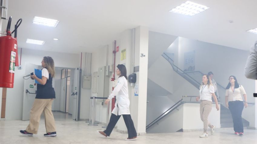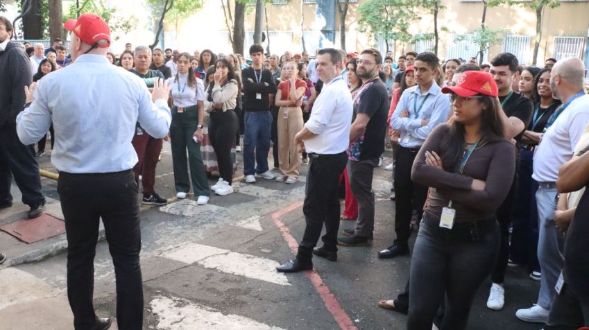 Apitos soaram e todos seguiram orientação dos brigadistas de cada setor; o exercício foi organizado pelo NILO