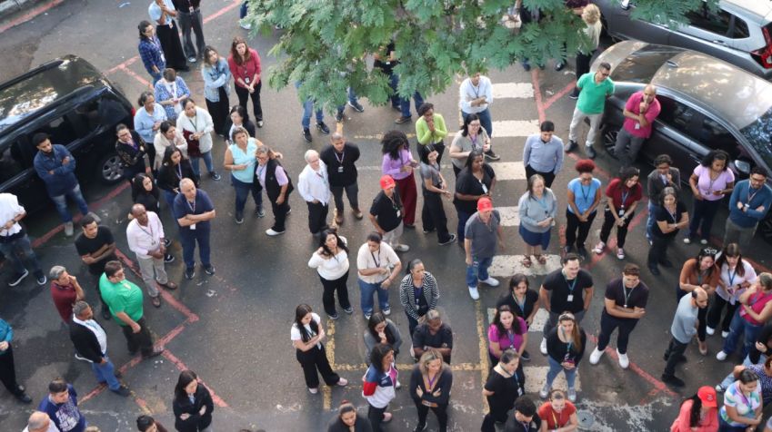 Dentro do Plano de Emergência e Segurança, o Prédio da Administração realizou, na manhã de quinta-feira (17/04/2025), o Simulado de Abandono, cumprindo treinamento de procedimentos de evacuação e ação preventiva.