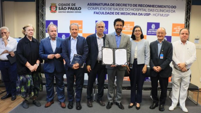 A assinatura do decreto foi formalizada, na quarta-feira (12/06), em evento no Auditório Berilo Langer, no Instituto Central (ICHC) com a presença do Prefeito de São Paulo, Ricardo Nunes; quatro de seus secretários do governo; a Diretora da FMUSP e Presidente do Conselho Deliberativo do HCFMUSP, Profª. Drª. Eloísa Silva Dutra de Oliveira Bonfá; o Diretor Clínico do HCFMUSP, Prof. Dr. Edivaldo Massazo Utiyama; o Superintendente do HCFMUSP, Eng. Antonio José Rodrigues Pereira e outras autoridades da Instituição.