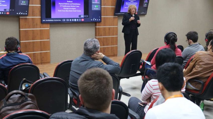 Após a visita, a Profª. Karen ministrou uma palestra para residentes e colaboradores do IMREA sobre "Reabilitação de Lesões Causadas por Queimaduras na Pele". Ela abordou as lesões provocadas por queimaduras, detalhando os diferentes graus e os tratamentos mais eficazes, enfatizando a importância de tratar queimaduras com água corrente e, se necessário, utilizar medicamentos e curativos apropriados.