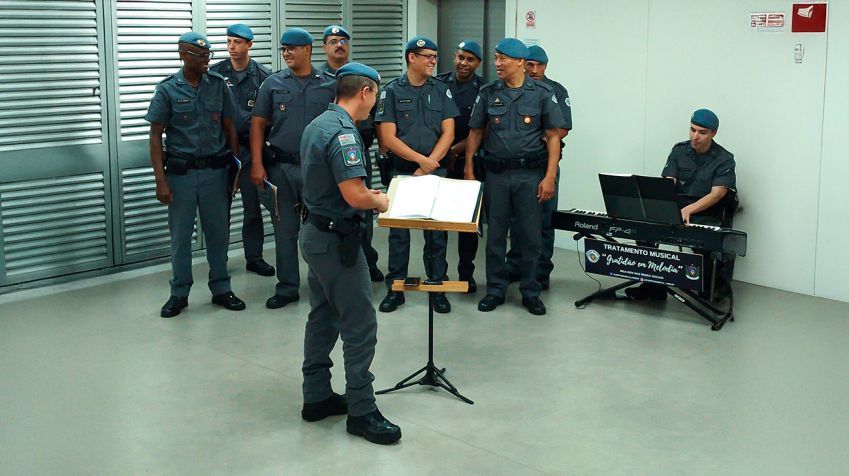 O Coral da Polícia Militar do Estado de São Paulo apresentou-se, na segunda-feira (16/12), no saguão do Instituto Central (ICHC), em para colaboradores e pacientes. Foi mais uma etapa do projeto “Tratamento Musical: Gratidão em Melodia”, que contou com repertório natalino e de canções nacionais e internacionais.