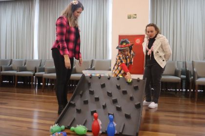 Entre as brincadeiras estavam pescaria, jogo de argolas, pula-fogueira, bingo, boca do palhaço e até um touro mecânico, proporcionando momentos de diversão e reabilitação ao mesmo tempo.