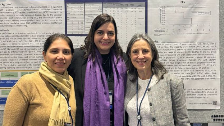 Outro destaque do evento foi o estudo multicêntrico, com dados do Icesp e de outro centro de tratamento oncológico, sobre o papel do DNA tumoral circulante (ctDNA) no monitoramento do carcinoma epidermoide cervical (colo uterino) e de canal anal em pacientes em tratamento de quimioradioterapia. O trabalho foi apresentado pelo Professor Titular da Disciplina de Oncologia Clínica do Departamento de Radiologia e Oncologia da FMUSP e diretor técnico da divisão de Oncologia do Icesp, Prof. Dr. Paulo Hoff; pela oncologista clínica do Núcleo de Pesquisa do Icesp, Dra. Camila Motta e pela médica assistente da Oncologia Gastrointestinal do Icesp, Dra. Maria Ignez, que contou com a participação de outras áreas como ginecologia e cirurgia gastrointestinal.