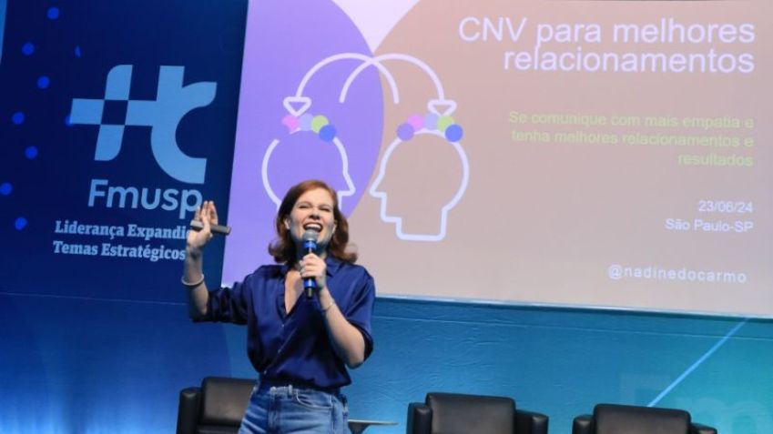 Sob o tema “Comunicação Não Violenta”, a palestra do evento ficou a cargo de Nadine do Carmo, que é bacharel em Administração de Empresas e Negócios e especialista em Neurociência Psicologia Positiva e Mindfulness (expressão em inglês que significa atenção plena).