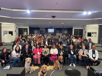No segundo dia, a programação incluiu palestra sobre comprometimento do colaborador; exposição sobre cuidados ao paciente pediátrico; debate sobre importância de pôneis e cães terapeutas no ambiente hospitalar e segurança psicológica nos times de cuidados do paciente.