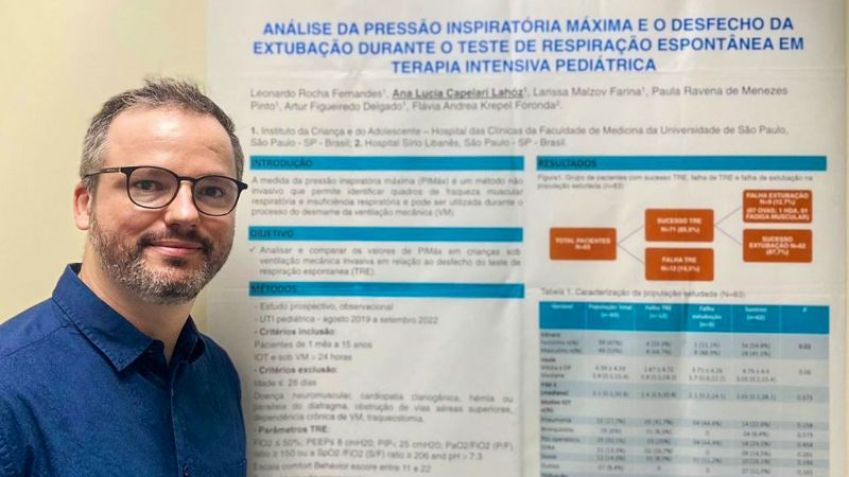 O simpósio foi apresentado pela diretora do Serviço de Fisioterapia do ICr, Ana Lucia Capelari Lahóz. A pesquisa é parte do projeto de doutorado do fisioterapeuta Leonardo Rocha Fernandes sobre tomografia de impedância elétrica durante o desmame ventilatório e conta com a orientação do Chefe do Centro de Terapia Intensiva do ICr, Prof. Dr. Artur Figueiredo Delgado, e da médica intensivista do ICr, Dra. Flávia Andrea Krepel Foronda, além da participação das fisioterapeutas da UTI pediátrica, Larissa Malzov Farina e Paula Ravena de Menezes Pinto. “Evidenciar o melhor momento para realizar a extubação da criança de forma não invasiva e à beira leito reforça a importância do fisioterapeuta como parte integrante do atendimento multiprofissional na terapia intensiva pediátrica durante este processo”, explica Leonardo Rocha Fernandes.