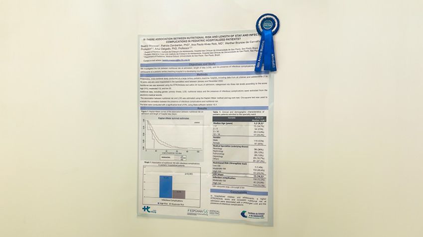 O estudo - intitulado “Existe associação entre risco nutricional, tempo de internação e complicações infecciosas em pacientes pediátricos hospitalizados?" - de autoria da Nutricionista Clínica do ICr, Beatriz Polisel Mazzoni Venditti, conta com a orientação do Chefe do Centro de Terapia Intensiva do ICr, Prof. Dr. Artur Figueiredo Delgado e da Nutricionista Supervisora da Unidade de Internação, Patrícia Zamberlan.