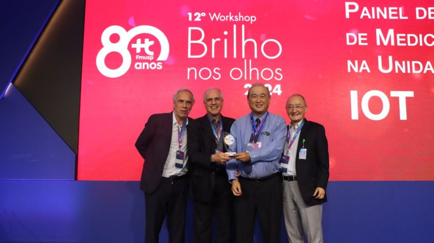Durante a cerimônia de abertura do Workshop Brilho nos Olhos, o Superintendente do HCFMUSP, Eng. Antonio José Rodrigues Pereira e o Diretor Clínico do HCFMUSP, Prof. Dr. Edivaldo Massazo Utiyama, relembraram as comemorações dos 80 anos do HC, apresentaram resultados e realizações neste ano e compartilharam a visão estratégica da alta direção do HCFMUSP para 2025.