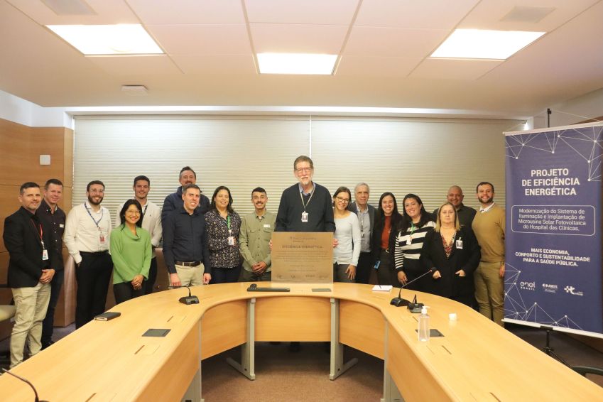 Pela Enel, estiveram presentes o Gerente de Sustentabilidade, Nelson Assumpção; a Gerente de Projetos, Ana Maria Maranho e membros das equipes da empresa. O descerramento de placa marcou a reunião realizada na Sala do Conselho Deliberativo do HCFMUSP.