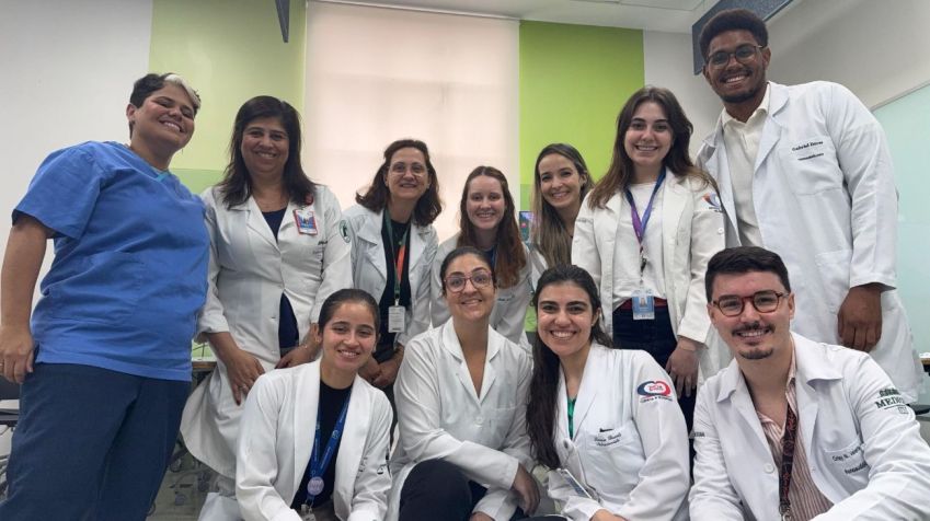 Na primeira semana do ano letivo de 2025, a FMUSP deu início às atividades acadêmicas com o Workshop do 5º ano, uma disciplina obrigatória e essencial coordenada pela Profa. Dra. Iolanda Tibério, com organização da Profa. Dra. Sylvia Farhat, da Dra. Giulianna Simonetti e do Dr. Gustavo Azevedo. Durante cinco dias intensivos, os estudantes participaram de atividades teórico-práticas realizadas em estações conduzidas por preceptores e assistentes. Destinadas ao aperfeiçoamento e reforço dos conhecimentos necessários para o Internato, as tarefas enfatizaram os aspectos essenciais da prática assistencial em ambiente hospitalar.