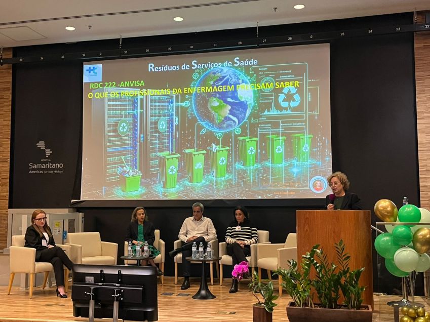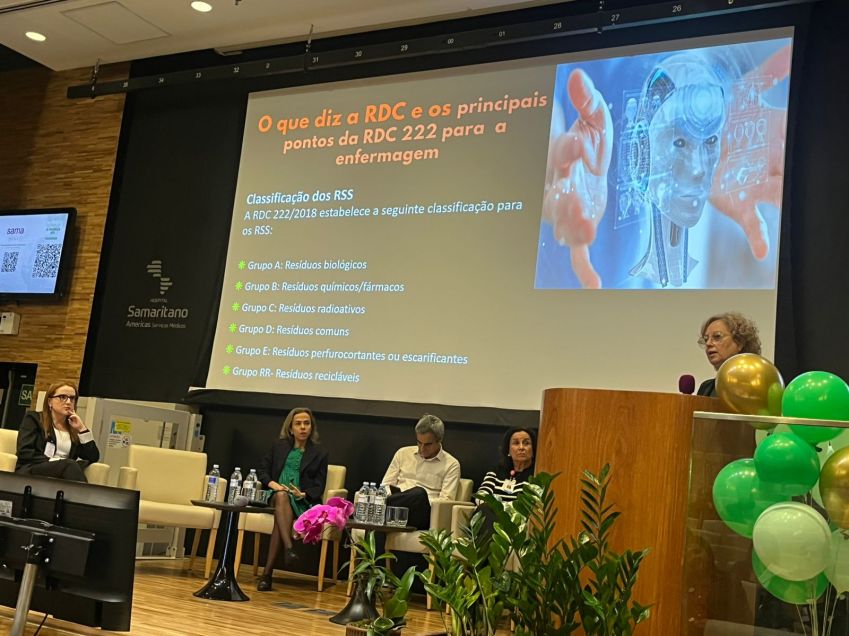 Durante o evento, foi destaque a palestra “RDC 222 – O que a Enfermagem precisa saber?”, abordando a importância da Resolução da Agência Nacional de Vigilância Sanitária (Anvisa) na gestão de resíduos de serviços de saúde e o papel estratégico da Enfermagem nesse processo.