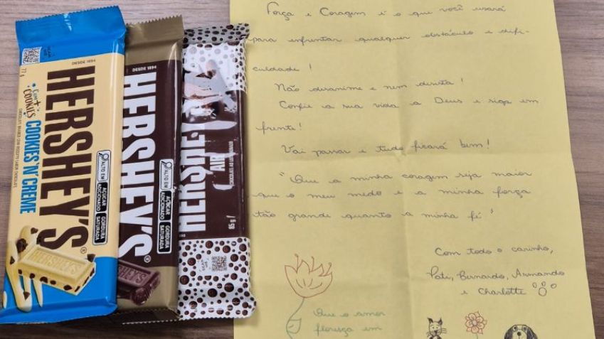 As crianças do CEDEI, a equipe pedagógica e seus familiares realizaram desenhos, cartas e prepararam embrulhos com chocolates para confortar as crianças gaúchas.