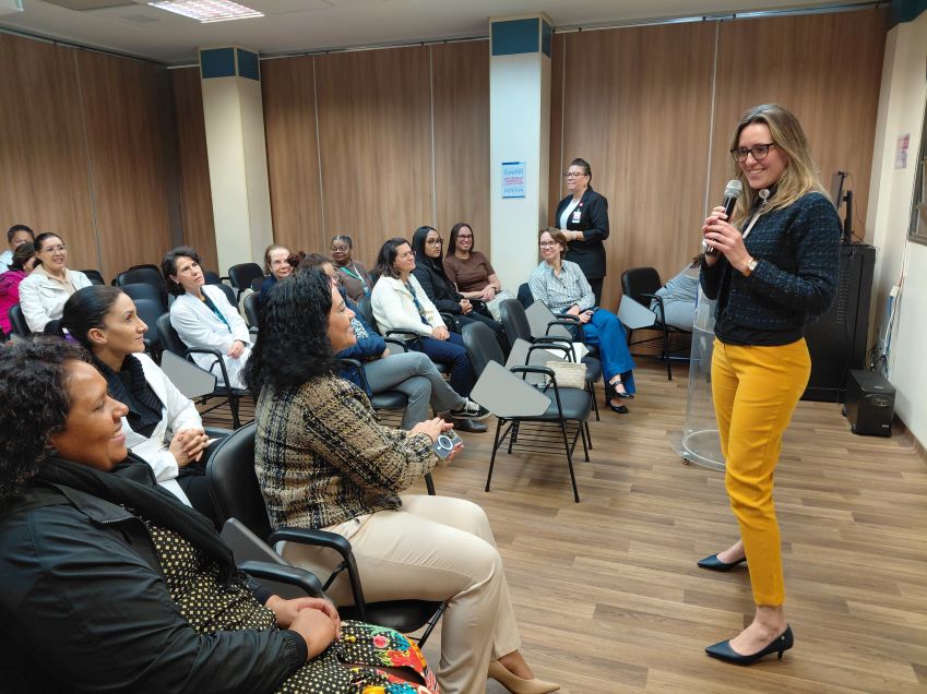 Ela explicou as diferenças entre alimentos processados e ultraprocessados, falou sobre a importância da legislação vigente da Anvisa para identificação de ingredientes nas embalagens (informação sobre o teor de açúcar, sódio e gordura nos rótulos), e indicou o “Guia Alimentar para a População Brasileira” para consultas e informações.