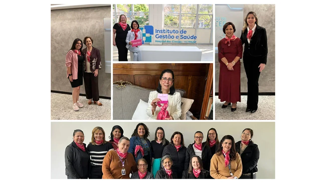 Dirigentes e colaboradoras do HCFMUSP vestiram o Lenço Solidário em prol da Campanha Outubro Rosa promovida pelo Icesp, Governo do Estado de São Paulo e lojas Marisa