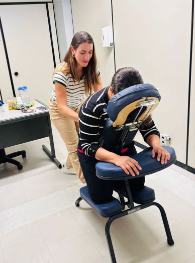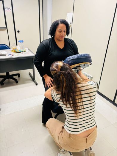 O NGP proporcionou uma experiência relaxante para as colaboradoras mães da equipe com sessões de massagem conduzidas pela profissional Gaby, que realiza atendimentos no Núcleo Especializado em Tecnologia da Informação (NETI).