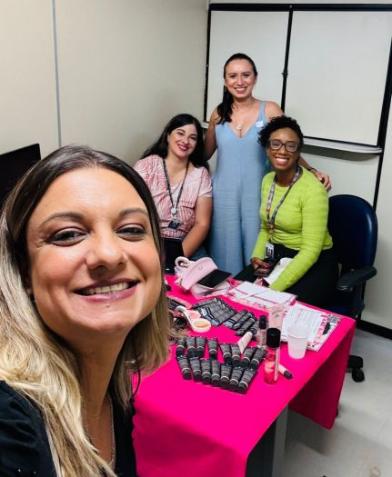 Já no dia 08 de maio, foi a vez das colaboradoras do Prédio da Administração (PA) e Anexos participarem do “Spa Facial & Make no PA e Anexos: Um convite ao cuidado e à beleza”, em parceria com a equipe Mary Kay.