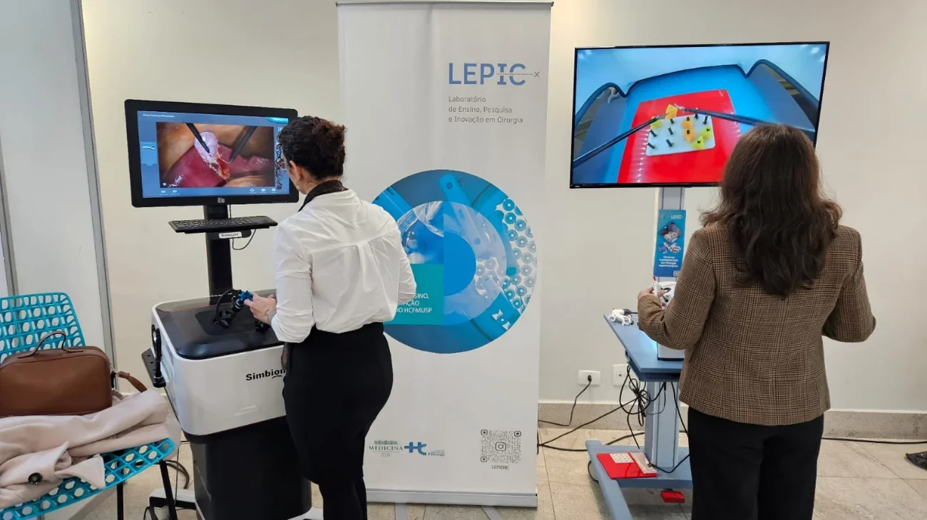 Participantes puderam realizar exercícios de coordenação nos dois simuladores de treinamento em videolaparoscopia disponibilizados para o evento