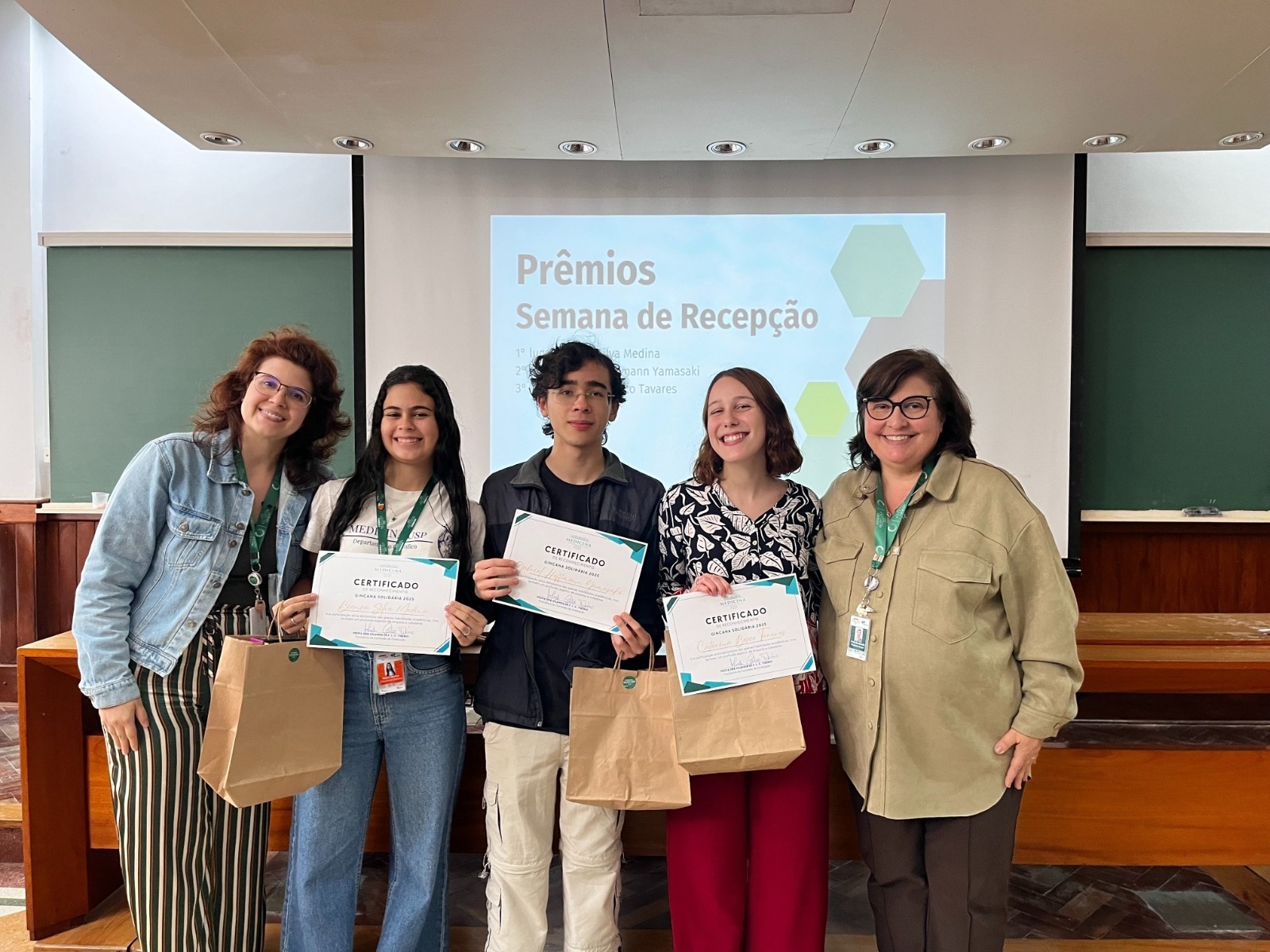 As iniciativas de acolhimento e integração voltadas aos alunos ingressantes realizadas pela Faculdade de Medicina da USP foram reconhecidas com Menção Honrosa pela Pró-Reitoria de Graduação da USP. A presidente da Comissão de Graduação, Profa. Dra. Iolanda Tibério, recebeu a premiação do Pró-Reitor, Prof. Dr. Aluísio Segurado, e o Pró-Reitor Adjunto, Prof. Dr. Marcos Garcia Neira, durante cerimônia realizada no dia 26 de junho.