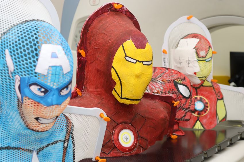 Com as máscaras, os pequenos pacientes ficam quietos e tranquilos durante as sessões de aplicação de radioterapia, reduzindo em 32% a necessidade de sedação graças ao projeto iniciado em 2018 por idealização de Robson Luiz de Souza, Técnico em Radioterapia do InRad.